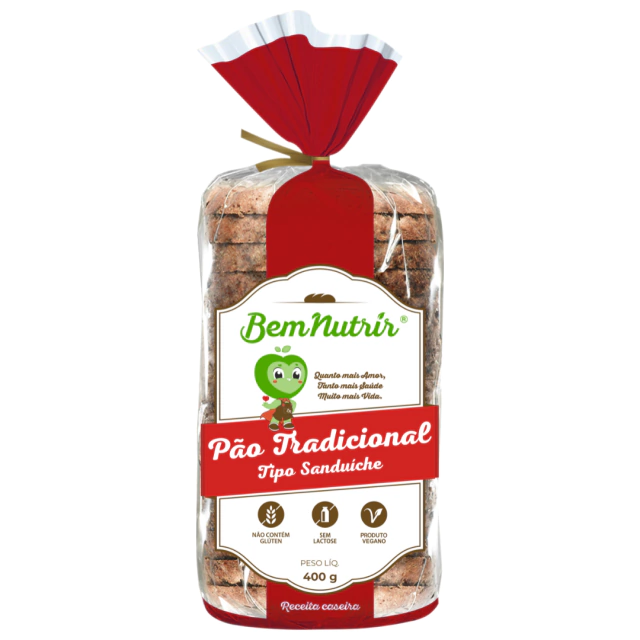 Nosso sucesso de vendas e com lugar cativo no coração de vocês, já sabemos! O Pão tradicional Tipo Sanduíche BemNutrir é amigo das receitinhas salgadas e doces por seu sabor neutro. Livre de lactose, sem glúten, sem ovos, sem adição de açúcar e vegano